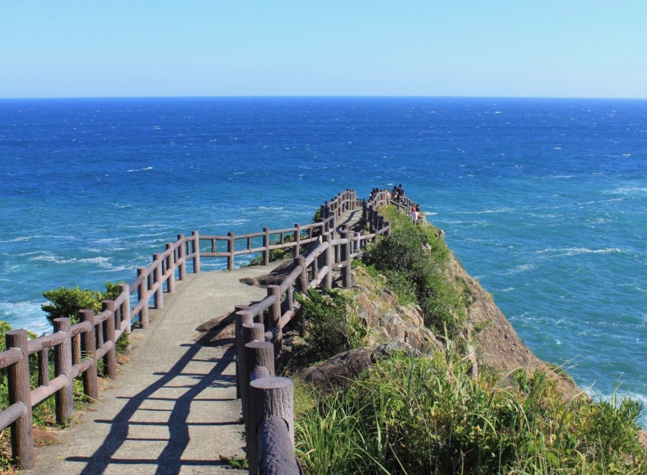 「日本のひなた」からの日の出をみんなで見るはずが、雲が多く断念。代わりにサトミツおひさまを拝んだ。その後は山下さんの独断と偏見による「山下占い」が披露され、おひさまは一喜一憂した。 - こだわりポイント: 日本最大級の柱状岩が続く断崖絶壁は圧巻。メンバーが歩いた遊歩道を散策してみてください。