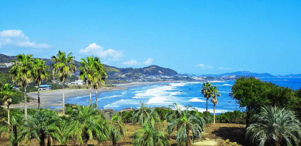 会場の「ひなたサンマリンスタジアム宮崎」から日向市へは、海沿いの景色を楽しみながら移動できます。